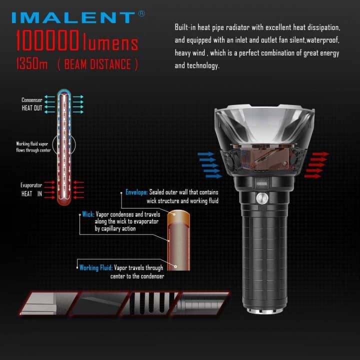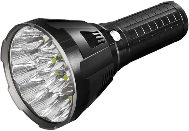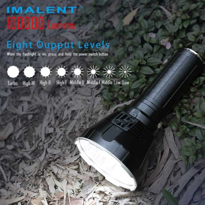 The Imalent MS18 100,000 lumen flashlight is by far the brightest flashlight ever created. It’s the brightest and most powerful flashlight ever devised with a solid build and blinding brightness. MS18 is a rechargeable flashlight and comes with 18pcs Cree XHP70 2nd high lumens LEDs with max output of up to 100,000 lumens. Max beam distance is up to 1,350 meters (4,429 ft) that is simply astonishing. Features super bright wide beam and nine modes, ultra-wide beam effortlessly illuminates a whole room or backyard. This flashlight is so powerful that its 50 times brighter than automobile headlights so take great caution when using this in close proximity to others. The MS18 100,000 lumen flashlight is ideal for hiking, camping, caving, exploring, power outages and any emergency situation.