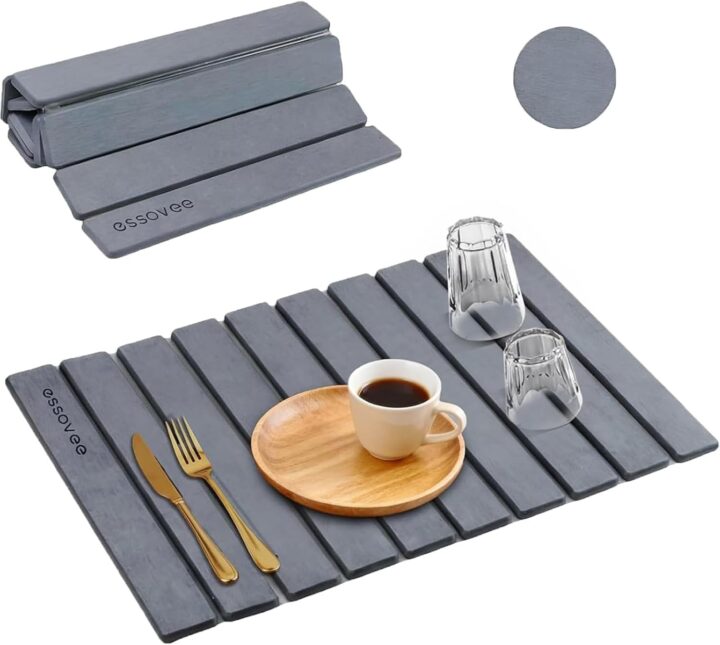 This Diatomaceous Dish Drying Pad is an upgrade from traditional fabric drying mats. It’s made from compressed diatomaceous earth blended with recycled paper that absorbs water remarkably quickly, up to 150% of its weight and dries within seconds, preventing the buildup of mildew and odors typical with fabric mats. Its firm, stone-like surface keeps dishes elevated and stable, while the roll-up design makes it convenient to store when not in use.