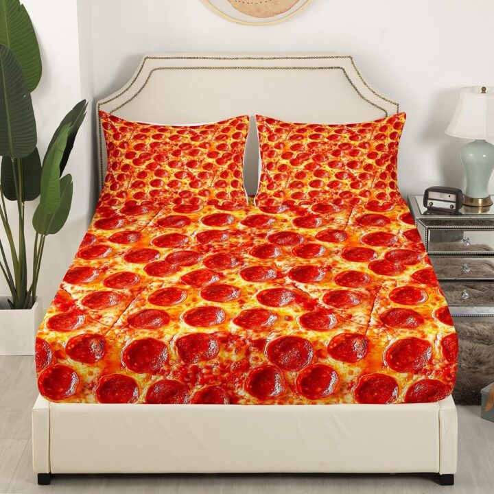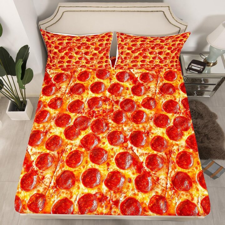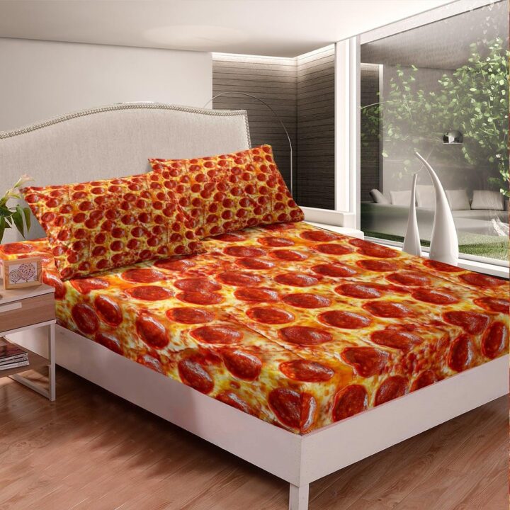 Enjoy the most delectable night’s sleep of your life by curling up on this pepperoni pizza bed set. The tempting design features an ultra-realistic graphic of a cheesy, pepperoni-covered pizza, so vivid you can almost imagine the grease dripping right off the slice.