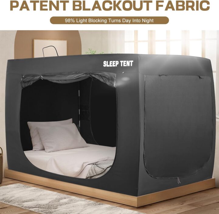 This privacy & blackout bed canopy is the perfect way to enjoy distraction free rest without the inconvenience of daylight or other factors in your home. One of the main factors to a good night sleep is not just temperature but also darkness and this tent replicates that perfect total darkness whether it’s in the middle of the day or the dark of night. The tent is versatile and attaches to most standard bed frames, twin to king-sized and creates a secluded space for sleeping or whatever other activities you require your privacy.