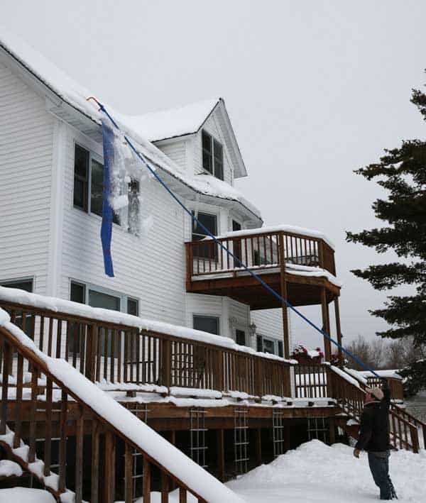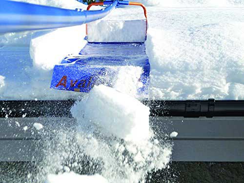 Thankfully, the avalanche wheeled roof rake makes shoveling snow off your roof a breeze and way easier than setting up a ladder, climbing on to the roof and shoveling it off manually.  Simply extend the roof rake and grab a huge chunk of snow and drag it to the edge of the roof.   The roof rake clears large swathes of roof area in no time and the natural incline of roofs make dragging the snow off of it much easier with the roof rake.